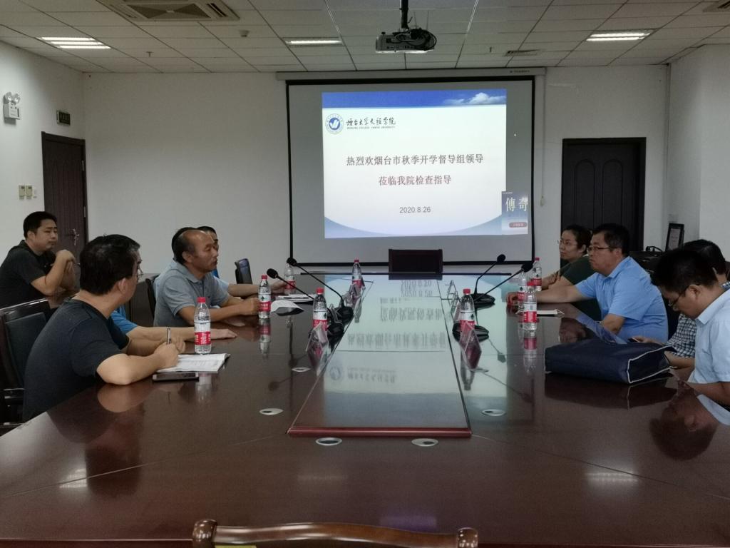 8月26日下午,烟台市委教育工委专职副书记王诗龙一行来烟台大学文经学院检查2020年秋季开学工作,学院党委书记唐家弘、院长助理尤敬法及相关部门负责人陪同检查。