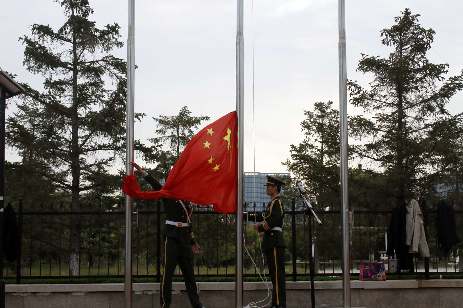 随着国旗徐徐升起,全体人员奏唱国歌,行注目礼,向伟大的祖国母亲致以衷心的祝福和崇高的敬意。光阴荏苒,岁月变迁。七十一年璀璨光辉,七十一年峥嵘奇伟,七十一年沧桑巨变,新中国创造了一个又一个人类发展史上的伟大奇迹。每当五星红旗冉冉升起的时候,每当国歌奏响的时候,每当在国旗下肃立的时候,都为自己是中国人而感到骄傲和自豪!