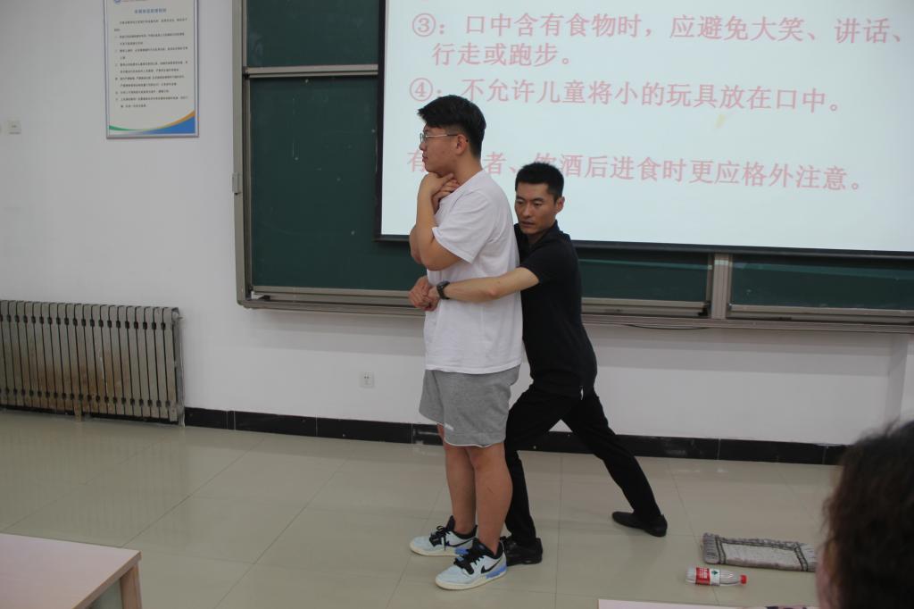 最后,葛医生邀请同学们共同参与,对着模型练习了心肺复苏,现场演练了海姆立克急救法等应急技巧。大家通过亲自动手操作,进一步巩固了所学知识,掌握了急救的基本技能。