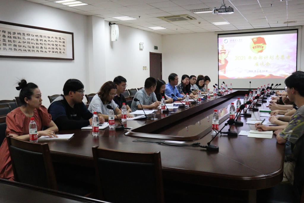 6月14日下午,烟台理工学院2021年西部计划志愿者座谈会于二教六楼会议室顺利召开,副校长张仁杰、组织统战部部长张琼玉、各学院党团书记以及2021年西部计划志愿者参加座谈会,会议由校团委书记申海滨主持。