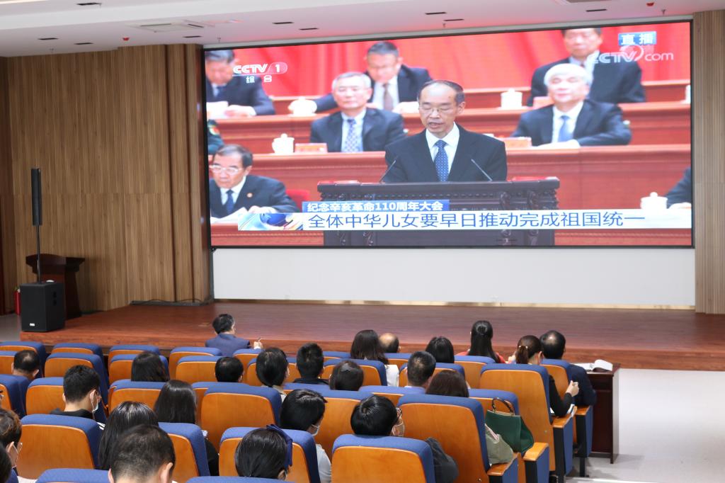 与会人员认真聆听中共中央总书记、国家主席、中央军委主席习近平在大会上发表的重要讲话。习近平总书记高度评价了辛亥革命的伟大意义,深刻阐述了全党继承孙中山先生的革命事业,团结带领人民不懈奋斗的光辉的历程,郑重宣誓了坚持“一个中国”原则和“九二共识”,坚决遏制台独的分裂活动,捍卫国家主权和领土完整的坚强决心与坚定意志。