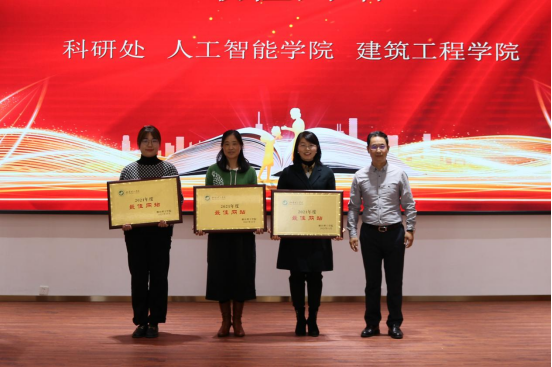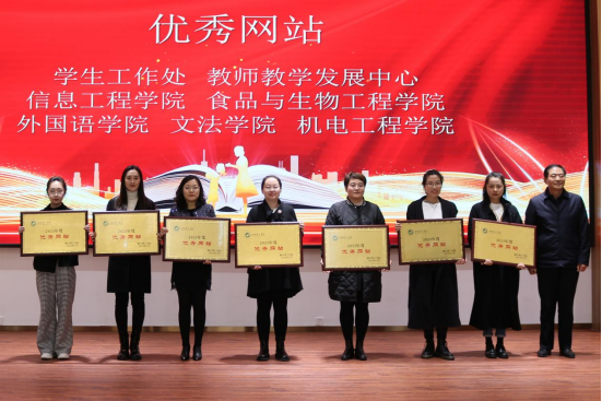 随后,于光辉校长为科研处、人工智能学院、建筑工程学院颁发“最佳网站奖”;副校长王宪杰为团委颁发“最佳新媒体平台奖”;校党委副书记张仁杰为学生工作部(处)、教师教学发展中心、信息工程学院、食品与生物工程学院、外语学院、文法学院、机电工程学院颁发“优秀网站奖”,为党委宣传部、招生就业处、会计与金融学院颁发“优秀新媒体平台奖”。