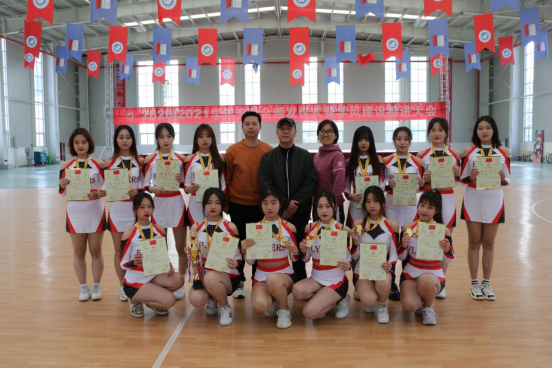 在学院和体教部领导的大力支持下,指导教师李莉带领我校19名大学生运动员,通过近一个月的刻苦训练,参与了青年组的赛事,与山东师范大学、青岛科技大学、潍坊医学院、西安交通大学城市学院等多所高校优秀队伍同场竞技,相互切磋,展现出了新时代学校体育教育下良好的精神风貌。经过激烈的角逐,我校啦啦队荣获学校俱乐部青年组《第二套花球啦啦操示范套路》第一名、青年组双人街舞自选动作第一名,指导教师李莉荣获“优秀教练员”称号。