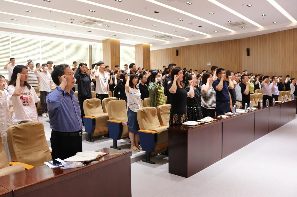 下午四点,全场起立奏唱国歌,全体师生庄重严肃,在激昂雄壮的国歌声中开始毕业生离校前最后一次党课学习。党委书记盛国军从伟大建党精神的科学内涵出发诠释了坚持真理、坚守理想,践行初心、担当使命,不怕牺牲、英勇斗争,对党忠诚、不负人民的伟大建党精神,对新时代青年应肩负的使命进行解读,始终坚守为人民谋幸福的价值追求,敢于担负为民族谋复兴的历史使命,勇于承担为世界谋大同的使命担当。