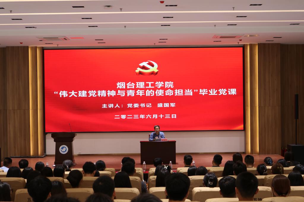6月13日下午,一堂题为“伟大建党精神与青年的使命担当”的党课在烟台理工学院综合楼六楼报告厅开讲。党课由学校党委书记盛国军主讲,党委委员、校长助理李洁主持。省派党建联络员、校领导、二级学院党总支书记、副书记,直属党支部书记及毕业生党员200余人参加党课学习。