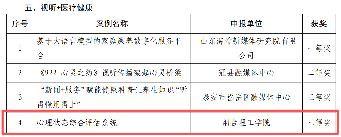 人工智能学院“心理状态综合评估系统”荣获山东省视听应用推广工程三等奖