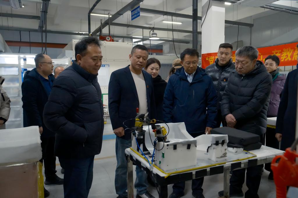 签约仪式结束后,双方共同走进召远汽车零部件有限公司开展院会协作党建联合赋能系列活动。姜华平书记以《党建引领聚匠心产教融合启新篇》为题,将党课开进车间。姜书记首先深入传达了党的二十届四中全会中关于统筹推进教育强国、科技强国、人才强国建设的重要部署,着重强调了高校与企业开展党建共建、推动产教融合对于国家发展和人才培养的重要性和紧迫性。校长助理李洁在发言中指出:“党的二十届四中全会为我们指明了清晰的方向,我们应以党建为纽带,积极打破高校与企业之间的壁垒,实现资源共享、优势互补,共同培养适应新时代需求的高素质应用型人才。”
