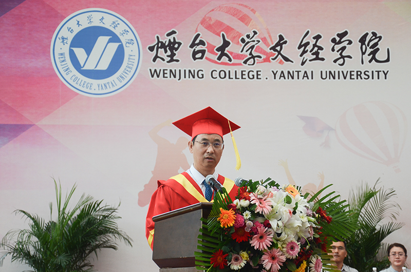 于院长强调,当今社会信息与科技快速发展,社会对应用型人才的需求量不断加大,每位毕业人都要力争做最好的自己,让社会因你而更美丽。对此,于院长对毕业生提出五点希望:一要始终坚守良知的底线,不被浮华所惑、不为功利裹挟,做到“知行合一”;二要永远保持终身学习的热情,用书籍提升自己的魅力,积极向他人和实践学习;三要拥有担当作为的勇气,自觉地将个人发展与社会需要紧密结合起来,内化为自身的素质和能力,外化为卓越的事业和成就,实现自身的价值;四要继续锤炼坚毅的品格,战胜自我,不忘初心,学会专注,学会坚持,实现“优雅转身”;五要拥有“大我”的人生胸怀,突破“小我”,走向“大我”,适应社会发展的需要,做一个融入社会、有益于社会的人。