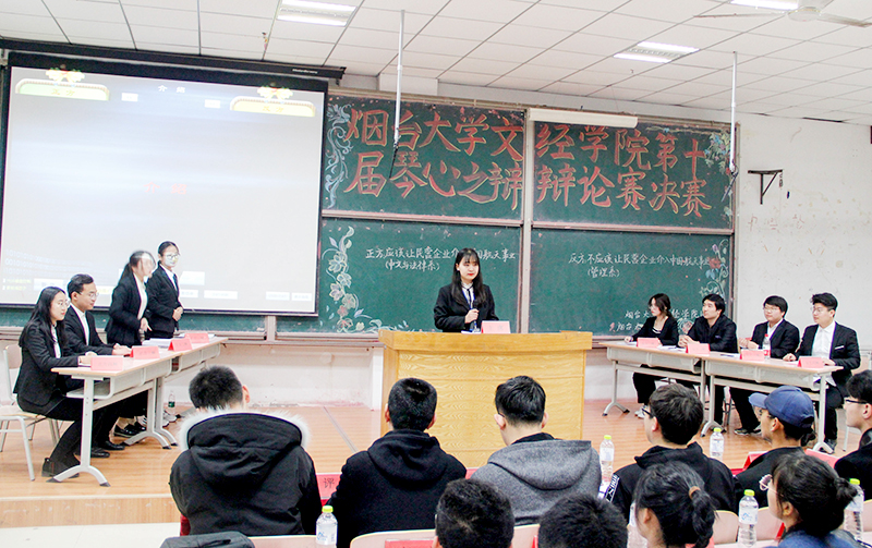 3月29日,第十届“琴心之辩”辩论赛决赛在二教115举办。烟台大学、鲁东大学、滨州医学院、山东工商学院、中国农业大学烟台校区、海军航空大学以及文经学院的优秀辩手担任比赛评委。