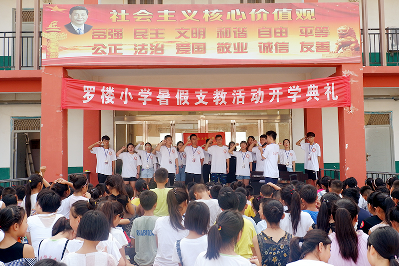 近日,烟大文经学院慈善义工管理中心骨干成员组成的琴心支教队在河南商丘罗楼小学开展暑期社会实践活动,为孩子们开展丰富多彩的暑假活动,陪孩子们度过一个充实快乐的暑假。