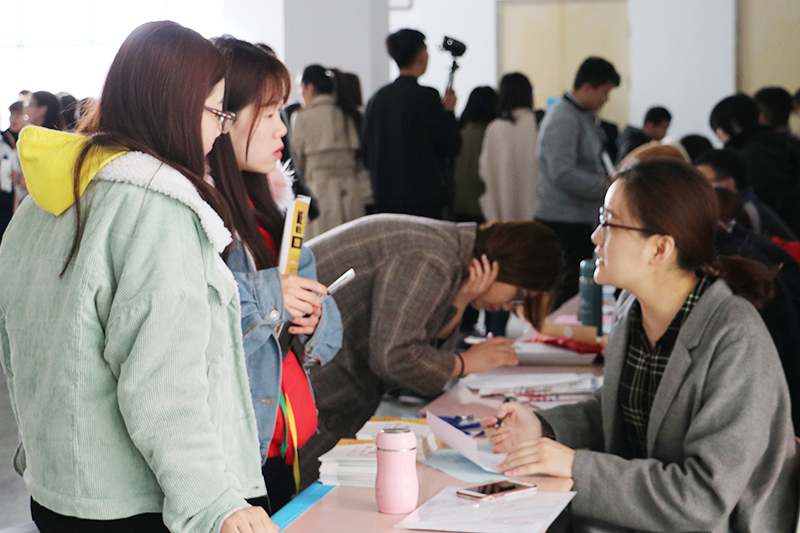 4月14日,烟台大学文经学院2018届毕业生春季校园招聘会在二教B区举行。方圆集团、烟台台海玛努尔核电设备有限公司、鲁南制药、山东水利建设集团有限公司、山东魏桥铝电有限公司等160家企业前来“招贤”,近6000个就业岗位涵盖学院各个专业,满足毕业生对工作岗位的多方需求,现场投递简历2759份。