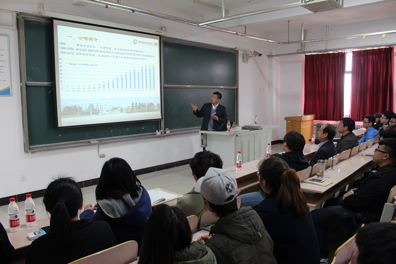 张宝芝总监以《汽车刹车盘铸造工艺及企业对大学生的素质要求》为题,从公司产品介绍、典型零件铸造过程分析及企业对员工的素质要求三个方面进行了深入细致的介绍,并以烟台胜地汽车零部件制造有限公司为例,分析了相关企业各个岗位对大学生专业技能和基本素质的不同要求。他结合自己在铸造行业积累的经验和丰富的阅历,为学生讲解了铸造业的实际案例,并向同学们提出两点希望:第一,希望同学们不断扩大知识面,提升专业技能;第二,希望同学们把专业知识和社会实践相结合,注重实践技能的培养。