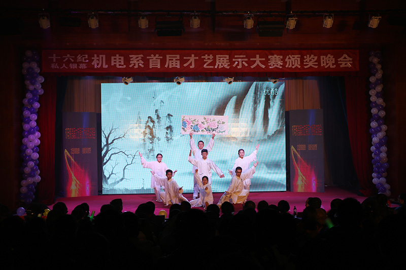 此次颁奖晚会,有科技创新作品展示,精彩的文艺节目和五彩缤纷的LED大屏幕,从热情洋溢的舞蹈,到优美动听的歌曲、激情的乐队表演,从幽默搞笑的小品 ,到独具匠心的纸片人,从我国传统文化的太极,到《不忘初心,继续前行》的诗朗诵,展现出机电学子的青春活力和实现梦想的信心。特别是优秀科技创新作品的视频展示,激发了广大机电学子参与科技创新活动的热情,充分展现了他们善于思考、勇于探索的创新精神和较强的实践动手能力。