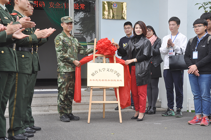 10月21日上午管理系“暖阳暖心”志愿服务队在烟台市芝罘区武警中队举行青年志愿者服务实践基地挂牌仪式。团总支副书记王晶,辅导员柳嘉靖、裴鹤参加仪式。