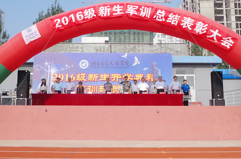 9月12日上午,2016级学生军训成果汇报表演暨总结表彰大会在体育场隆重举行。军训团团长丛林松中校,军训团参谋长付鹏杰上尉,院院长于光辉,党委书记、副院长李相然,副院长王来武、刘孔庆、辛连军,院长助理尤敬法、莫红菊,各系部主任以及相关职能部门负责人出席大会。大会由副院长王来武主持。
