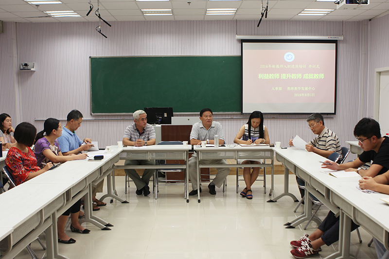 为加强我院新教师的职业素养,帮助新教师完成角色转换,适应新的教育教学工作,9月1日下午,2016年新教师入职进岗培训开训仪式在二教505召开,党委书记、副院长李相然,副院长王来武,院长助理莫红菊,人事部部长徐焕波,教师教学发展中心主任陈忠华等出席现场,陈忠华主持仪式。