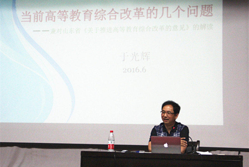 6月9日下午,院长于光辉在一教多功能厅为全院教职员工作了题为《当前高等教育综合改革的几个问题》的讲座。党委书记、副院长李相然主持会议。