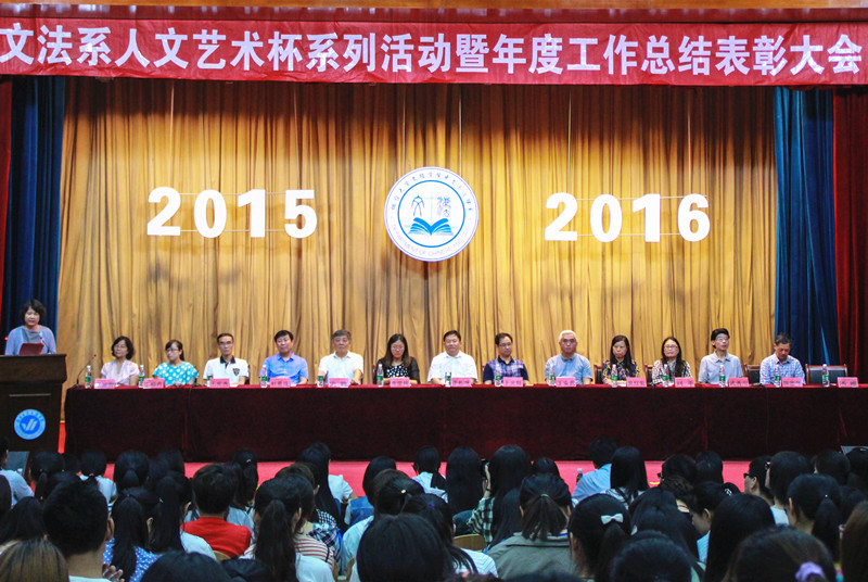 6月10日下午,“文法系人文艺术杯系列活动暨2015-2016年度工作总结表彰大会”于一教多功能厅举行。院长于光辉,党委书记、副院长李相然,副院长王来武,党委副书记李荣梅,院长助理莫红菊以及相关职能部门负责人与文法系师生共聚一堂,共享丰硕成果。大会由文法系党支部书记王淑霞主持。