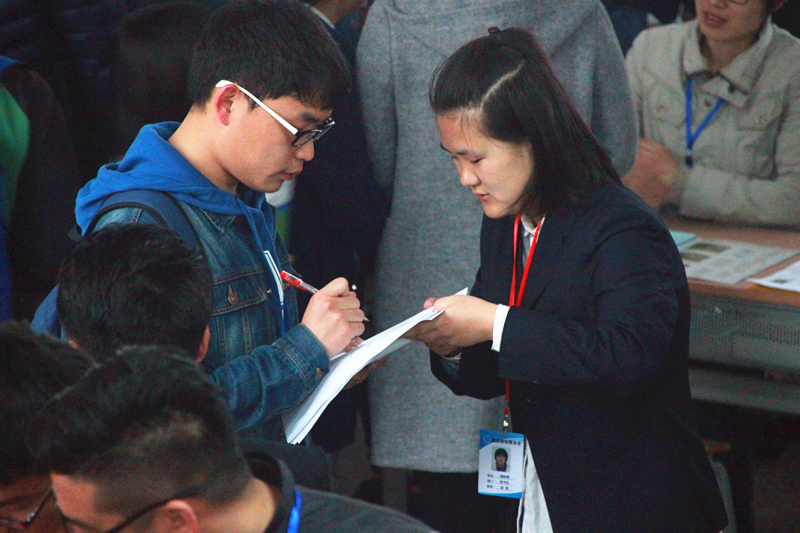 为做好本次招聘会的各项保障工作,就业创业指导中心专门选拔了100余名志愿者全程跟踪服务。在招聘会现场,志愿者佩戴统一标牌,分工协作、热情服务,有效保障了本次招聘会的顺利进行。文法系志愿者刘欣怡说,服务工作虽然辛苦,但是能为师哥师姐就业献出一份自己的力量,感到很值得,而且通过志愿服务也体会到了就业竞争的激烈,对今后提升自身素质、增强竞争力很有帮助。