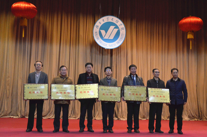 年终岁尾,春节将至。为总结、表彰一年来学院在各项工作中取得的喜人成绩,营造健康和谐的节日氛围,1月15日晚,烟台大学文经学院2015年度总结表彰大会暨新年联欢会在一教多功能厅隆重举行。院长于光辉,党委书记、副院长李相然,副院长王来武、刘孔庆,党委副书记李荣梅,副院长辛连军,院长助理尤敬法,与全院教职工欢聚一堂,共享喜悦。
