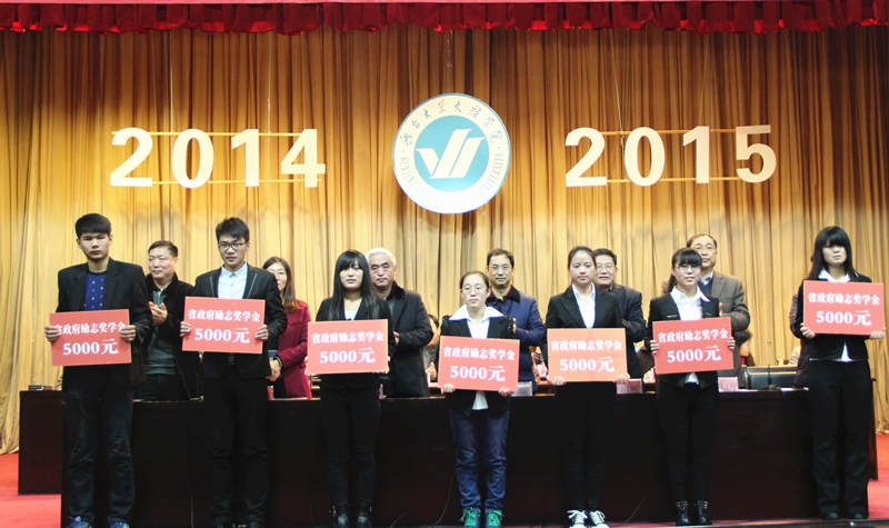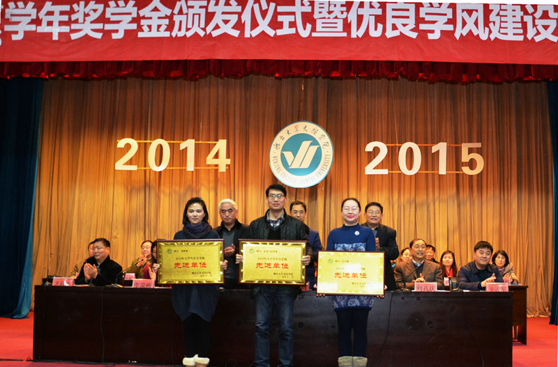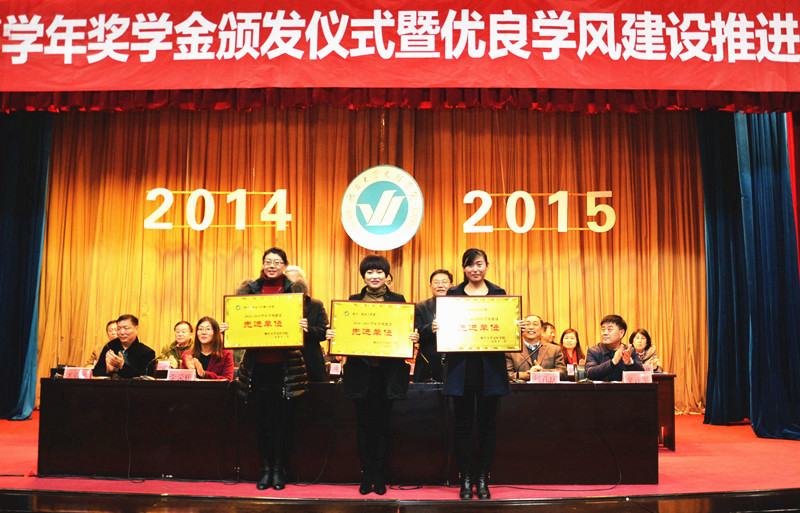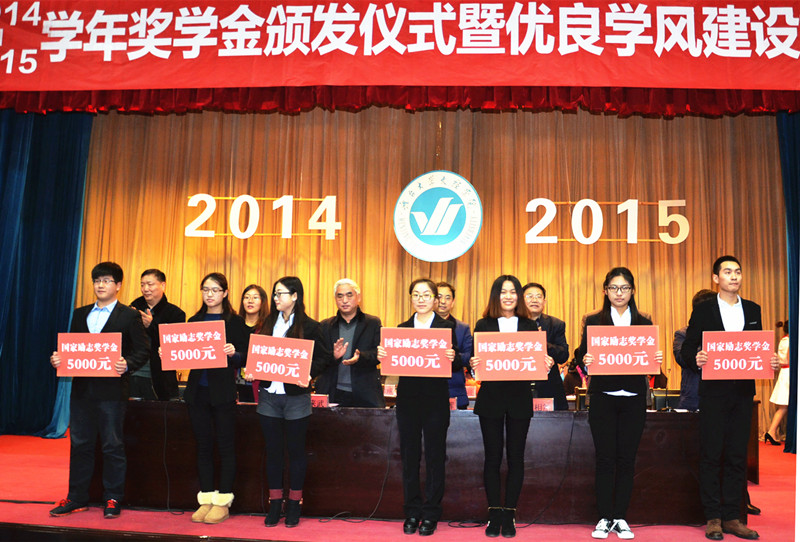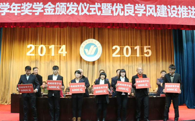 会上宣读了《烟台大学文经学院2014-2015学年国家奖学金、省政府奖学金、国家励志、省政府励志奖学金获奖学生名单》、《烟台大学文经学院关于颁发2014-2015学年奖学金的决定》、《关于表彰2014-2015学年先进班集体的决定》等十项奖学金及荣誉称号表彰决定。院领导为获奖学生、先进集体代表颁发奖励与荣誉证书,希望他们再接再厉、自强不息,以更好的成绩回报学校,回报社会。