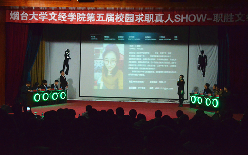 活动分为“职场初印象”“职我本色”“权力反转”和“现场签约”四个环节。7名选手依次登台,结合自身专业和特点向用人单位作求职宣讲和技能展示。用人单位根据选手求职意向和宣讲内容选择留灯或灭灯,并作出相关提问。“权利反转”环节中,选手选择保留两盏亮灯,根据岗位条件选择自己中意的企业。选手在场上出色的表现、企业代表犀利的提问获得了现场企业及所有观众的阵阵掌声。经过层层突破,最终,6名同学分别成功应聘到烟台链家、鲁南制药、通岳汽车等五家企业。