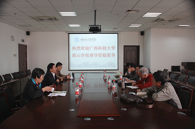 10月14日上午,广西科技大学鹿山学院教育教学督导组组长刘汉生一行五人来访我院,就教学督导、教学质量监控等方面进行考察交流。党委书记、副院长李相然在六楼会议室热情接待了来宾,教务部部长武秀川、评建办主任刘俊英、教师教学发展中心主任陈忠华参加了座谈交流。