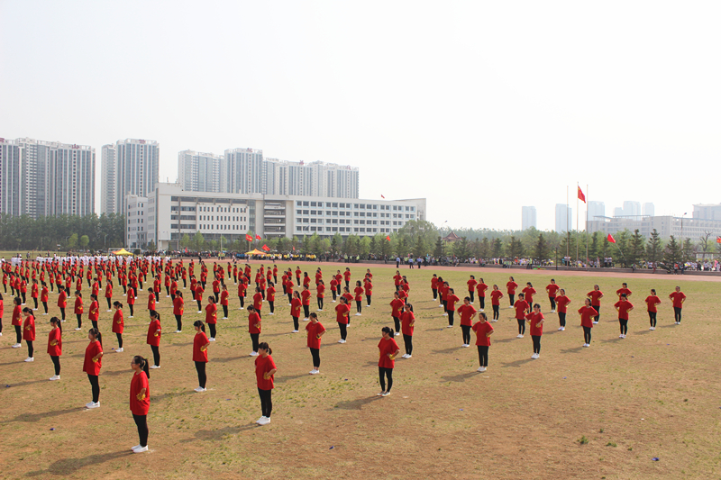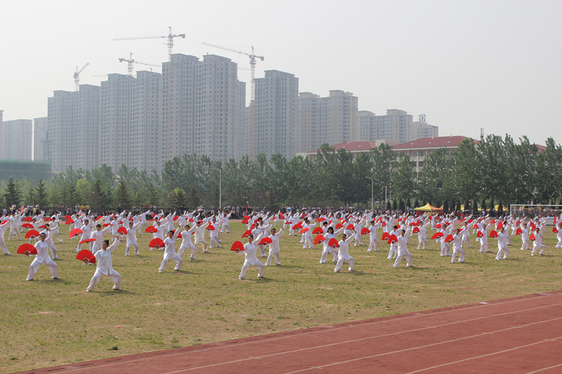 开幕式表演中,300人太极刚柔并济,充分展现了中华武术的道韵魅力;健美操“小苹果”热情洋溢,成为体育场上一道青春风景;散打表演气势恢宏,田径场上充斥着运动与火热气息。