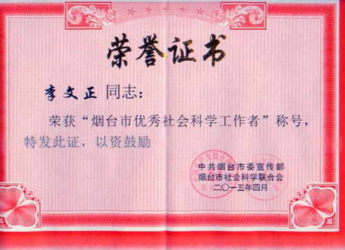 我院教师李文正荣获 “烟台市优秀社科工作者”称号