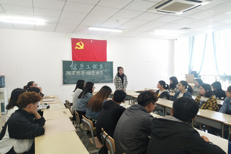 5月6日,信1703-1团支部于二教A区617教室开展“陋室德馨,雅室存志”主题交流会。信息工程系团总支副书记、17级辅导员张雅芝参加指导,20余名学生骨干及优秀宿舍代表参与交流,会议由信1703-1班团支书林佳惠主持。