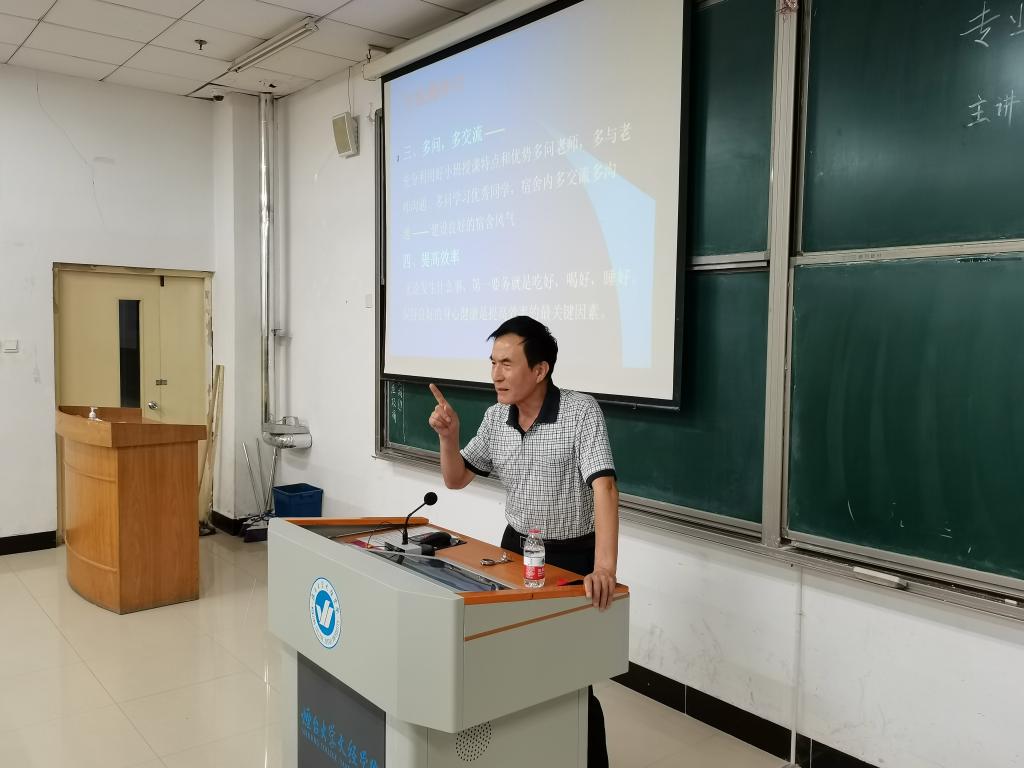 金海珠主任以幽默风趣的方式介绍了自己,并介绍了自己的研究领域,分享了生活点滴。随后,金主任分别介绍了食品系的四个专业——生物工程、食品科学与工程、食品质量与安全、食品营养与检测。金主任通过介绍帮助大一新生快速了解四个专业的差异,并着重分析了食品科学与工程和食品质量与安全专业的异同。在专业的认识方面,金主任给大家提了诸多很有价值的意见供同学们参考。对于专业课的学习,金海珠主任提出“我们要在战略上藐视敌人,战术上重视敌人”,要多问多交流,提高效率,养成良好的学习习惯。