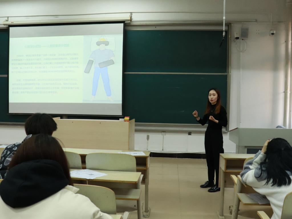 为深入学习贯彻习近平新时代中国特色社会主义思想,扎实做好后疫情时期大学生心理健康教育工作,提升我系心理育人工作质量。12月3日下午,中文与法律系邀请学工部心理健康教育指导中心张莉敏老师于一教201举办心理健康教育专题讲座。2018级辅导员辛佩恕老师出席,各班心理委员及部分学生代表参加本次活动。