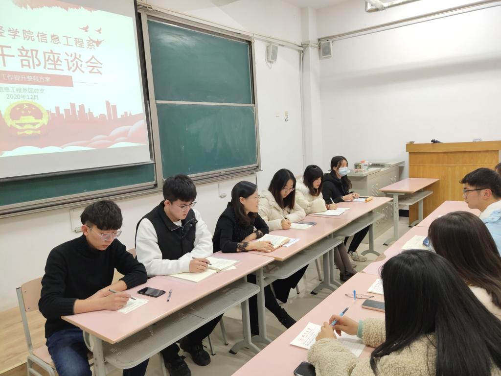 为深入学习宣传贯彻党的十九届五中全会精神,全面了解我系共青团工作,不断凝聚共识、统一思想,使我系共青团工作更好地开展,12月8日下午,信息工程系在二教511召开共青团干部座谈会。会议由信息工程系团总支书记祝箐主持,各年级团干部代表参加了会议。