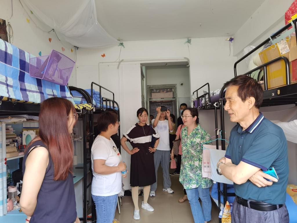 为全方位掌握毕业生在校情况,进一步落实毕业生相关工作部署,保障毕业生安全、平稳离校,6月7日上午10点,食品与生物工程学院院长金海珠、党总支副书记赵蓓、辅导员于小康以及班主任姜倩倩、韩明月、王晓君、秦红玉、王志宏等共同走访毕业生宿舍。