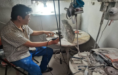 吴其楷先生向团队成员讲解滑石雕刻发展历程