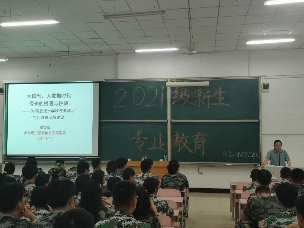 为了使2021级新生能够加强专业认知,培养学习兴趣,更好地做好未来规划,9月13日晚七点,信息工程学院在二教509举办2021级新生专业教育讲座。此次讲座由信息工程学院院长宋宜斌担任主讲,党总支副书记王明印以及全体新生班主任参加此次讲座。