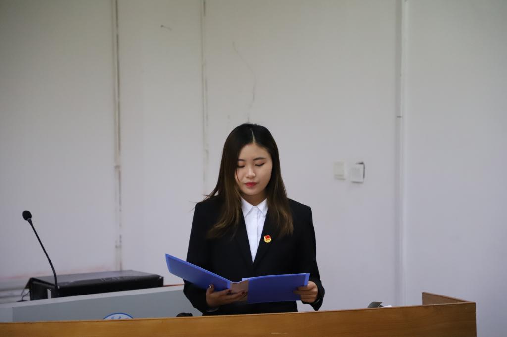 在发言环节中,首先由建筑工程学院袁瑞代表学员进行发言。她表示我们在学习中进步,在实践中成长,在奉献中升华是我们对“青年马克思主义者”的深度诠释,更是我们作为新时代学生骨干所肩负的不可推卸的责任。