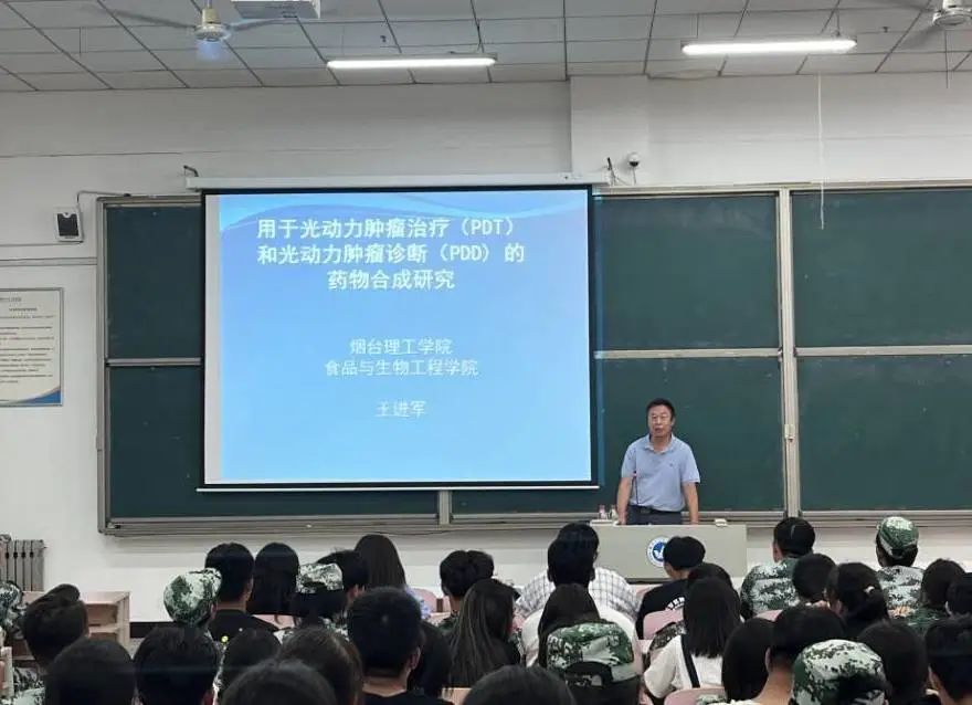 王进军教授通过通俗易懂的语言帮助新生加深理解和推导,有效拓展了学生学习的广度和深度。他举一反三,对新型光动PDT药物的合成问题进行了重点讲解,同时展示了光动力治疗在猫和人身上取得的临床实验成果。王教授耐心解答了同学们提出的问题,并结合当前形势,对光动力抗癌药物专业知识进行了全面解读。同学们在讲座中表现出浓厚的兴趣和极高的参与度,大家纷纷表示收获颇丰、受益匪浅,更加明确了学习方向及就业目标。