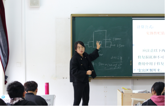 《资产评估》是烟台理工学院会计与金融学院一流本科专业的核心课程,注重培养学生在定量分析、预测方法以及评估理论研究等方面的能力,旨在为资产评估行业输送人才。在此次观摩课中,刘佳昕指出”机器设备评估成本法”是本次课程的重点内容,通过板书相关例题对本章节的机器设备贬值计算进行详细的讲解,与实际生活中的案例评估做对比。同时采用思维导图方式对机器设备评估的三种方法进行总结,深化同学们对课程知识点的理解。让同学们进行随堂习题训练,强化学生对知识点的实际应用能力。
