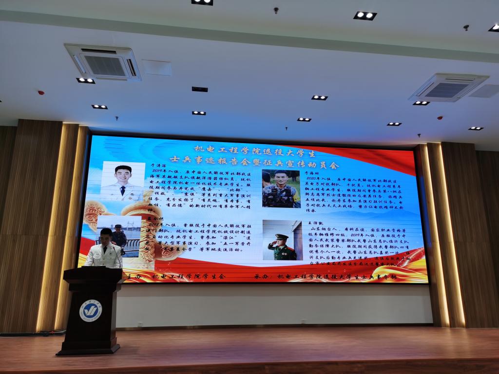 本次报告会不仅仅给机电学院大学生树立了榜样,还加深了同学们对部队军营生活的认识和理解,进一步增强了广大学子参军报国的责任感和使命感,激发了大家投身军营、报效国家的热情,为国防建设奠定了坚实的基础。