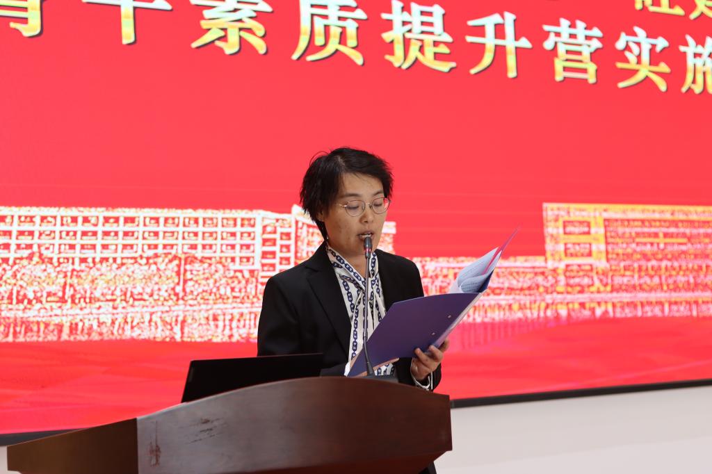 开班仪式在国歌声中拉开序幕,全体成员严肃庄重地奏唱了国歌。随后,建筑工程学院团总支负责老师马杰宣读了《建筑工程学院“砼建先锋”学生骨干素质提升营实施方案》,明确了此次活动的主要目标、流程内容及其意义。之后,建筑工程学院党总支副书记臧延云为此次活动进行授旗,并表达了对于参会学员的无限期望。其次由优秀学生代表李梓晗上台发言,他说到作为学生干部应做到刻苦努力学习、坚定理想信念、锤炼品格意志,同时提高自身的政治素质、知识素质、心理素质,不断充实自己,提升自己。