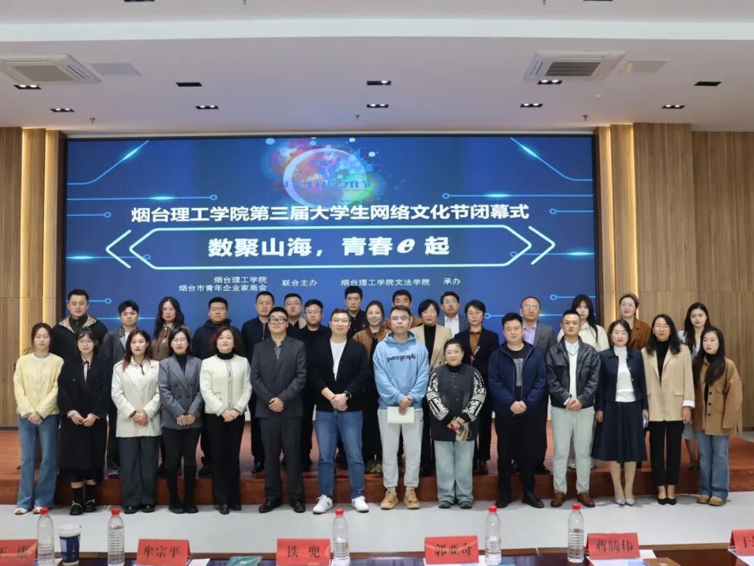 为了推动校企合作,引导健康网络行为,丰富校园文化生活,提升学生数字素养,由烟台理工学院、烟台市青年企业家商会联合主办,文法学院承办的烟台理工学院第三届大学生网络文化节闭幕式于11月1日在烟台理工学院综合楼六楼学术报告厅举行,团总支副书记纪俞舟主持。