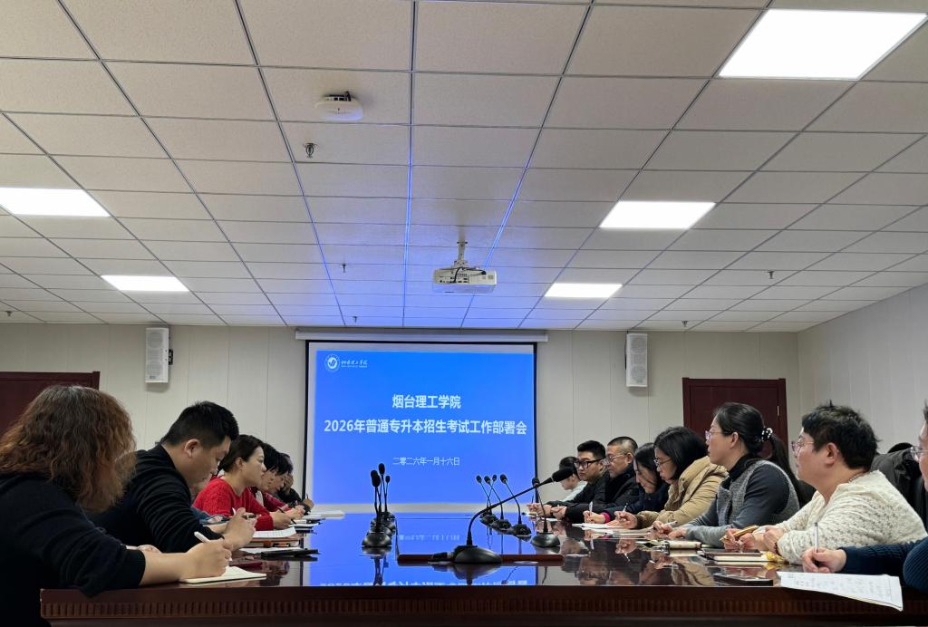 1月16日下午,烟台理工学院2026年普通专升本招生考试工作部署会在综合楼六楼会议室召开,旨在全面落实省教育厅相关要求,统筹推进本年度专升本招生各项工作。会议由招生就业处副处长包微主持,学生工作处、教务处、数据与网络中心、招生就业处相关工作人员,以及各二级学院自荐生考试负责工作人员参加会议。